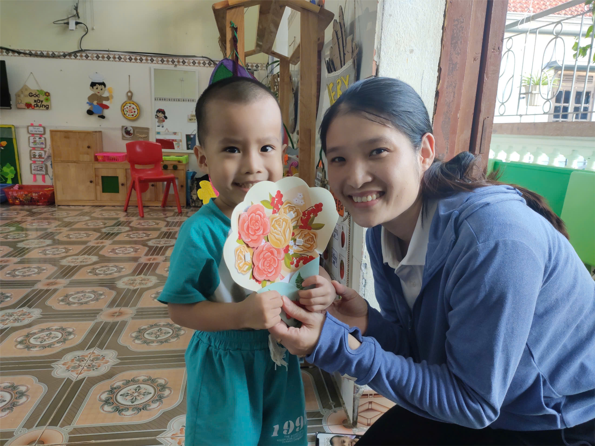 Những tấm thiệp dù chưa được khéo léo nhưng đây là sản phẩm tự làm của các con và mỗi bạn là một mẫu thiệp riêng không bạn nào giống bạn nào, thể hiện tình yêu thương, kính trọng đối với bà, với mẹ của mình.