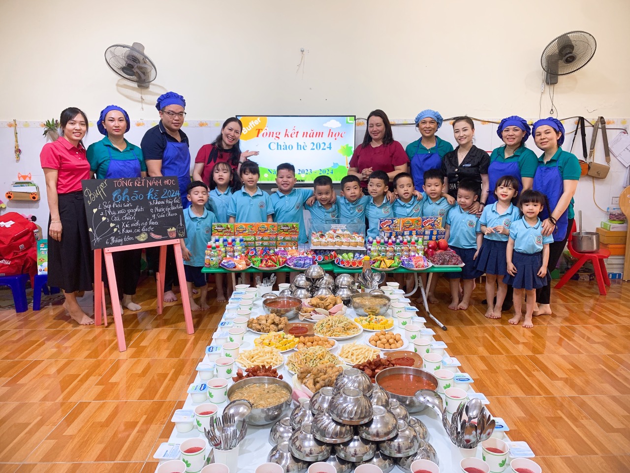 Bữa tiệc buffet liên hoan cuối năm là dịp để các cháu khối 5 tuổi có kỷ niệm dưới mái trường mầm non thân yêu và các cháu nhà trẻ, 3 tuổi, 4 tuổi có tâm thế thoải mái, phấn khởi về kỳ nghỉ hè, hứa hẹn cho một năm học mới với nhiều niềm vui và thắng lợi mới!