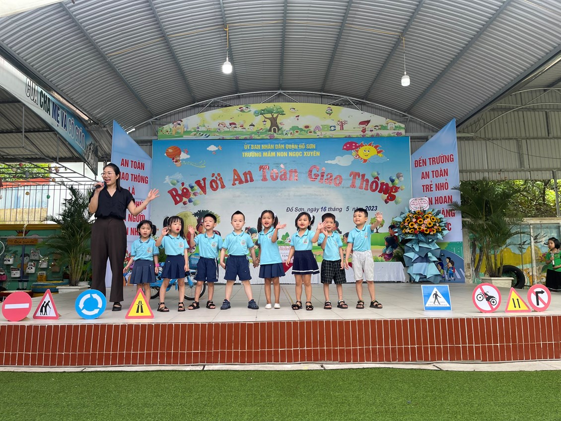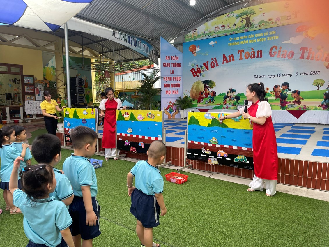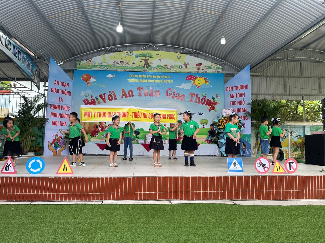 Chương trình Bé với An toàn giao thông của trường Mầm non Ngọc Xuyên được tổ chức theo hình thức thi đua giữa các đội chơi đến từ cáckhối lớp 3 tuổi, 4 tuổi, 5 tuổi với các phần:
