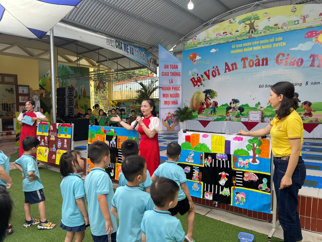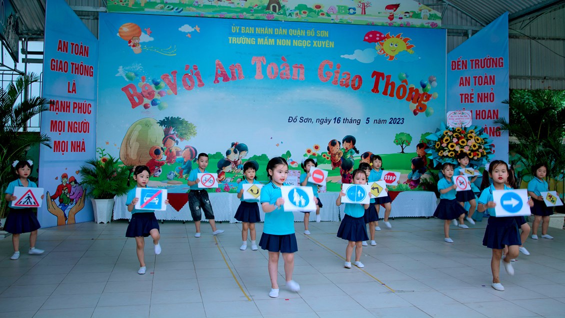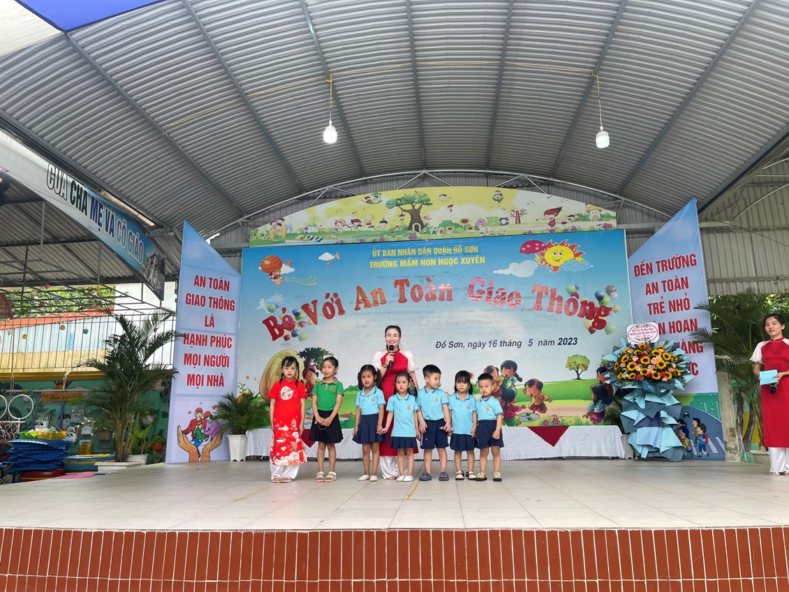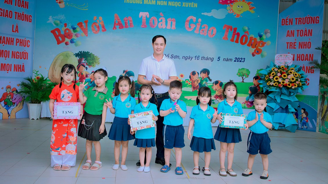 Chương trình Bé với An toàn giao thông của trường Mầm non Ngọc Xuyên được tổ chức theo hình thức thi đua giữa các đội chơi đến từ cáckhối lớp 3 tuổi, 4 tuổi, 5 tuổi với các phần: