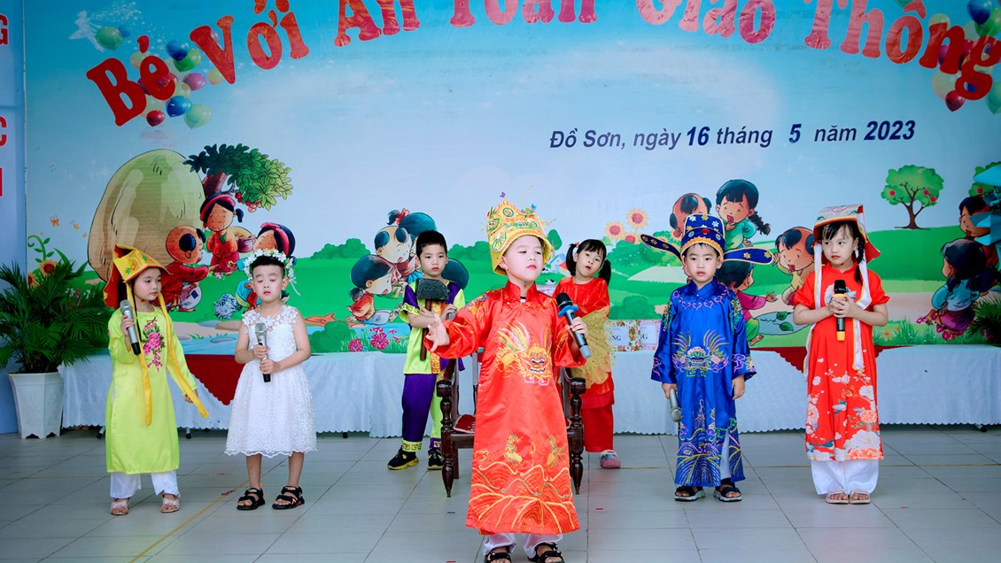 Ở phần 2 “Bé tìm hiểu kiến thức giao thông”, bằng sự hồn nhiên, thông minh, nhanh nhẹn, các bé đã tham gia tích cực các trò chơi, trả lời câu hỏi trắc nghiệm rung chuông vàng. Thông qua chương trình giao lưu đã tạo được không khí vui tươi, hứng thú và đầy thiết thực để các bé có cơ hội được tham gia hoạt động khám phá, trải nghiệm thực tế về kiến thức an toàn giao thông. Từ đó giúp trẻ rèn luyện tính tự tin, hoạt bát, khích lệ niềm vui khi đến trường, góp phần phát triển trí tuệ, hình thành kỹ năng sống tích cực cho trẻ.
