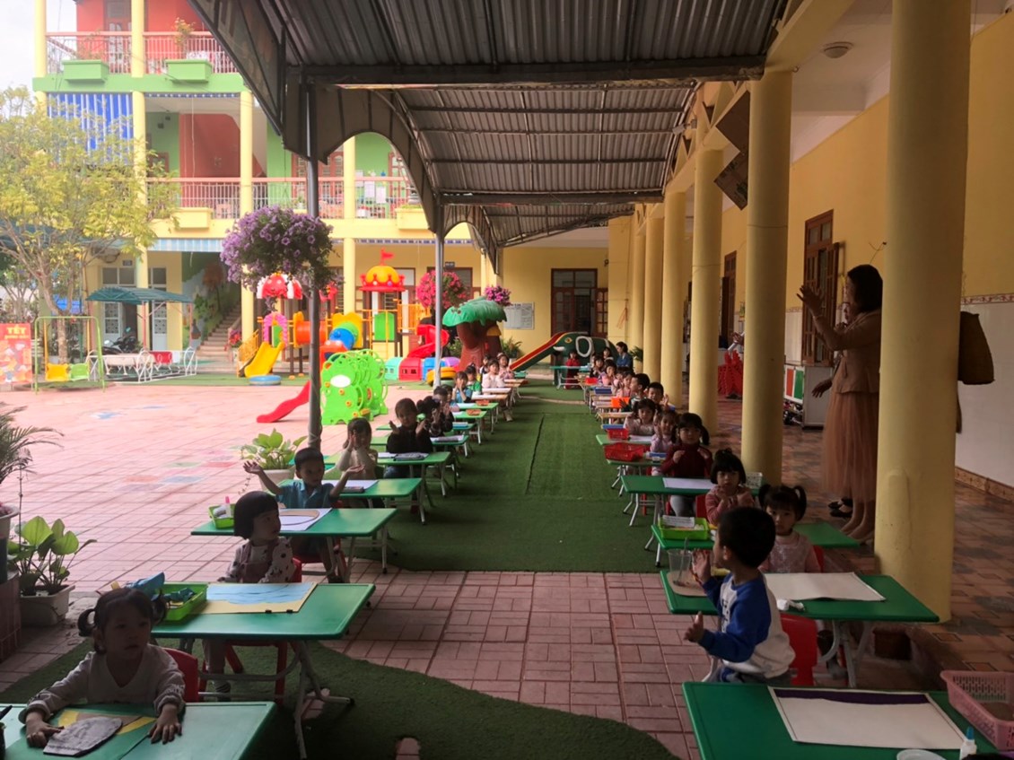Sau thời gian làm bài 60 phút có rất nhiều tác phẩm đẹp, một số bài thể hiện kỹ năng tạo hình rất tốt và phong phú về nội dung đa dạng về màu sắc, bố cục hợp lý.