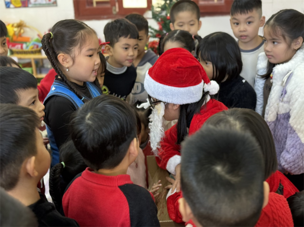 Và các bạn nhỏ lớp mẫu giáo 5TA2 đã không bỏ lỡ dịp lễ đặc biệt này để tham gia hoạt động làm bánh mừng Giáng Sinh vô cùng ý nghĩa!! Các bạn nhỏ rất hứng thú khi được tự tay trang trí những chiếc bánh ngọt. Các con đã biến thành một “siêu đầu bếp nhí” ngay hôm nay với việc tham gia chương trình đầy bổ ích “Bé học làm bánh”. Dưới sự hướng dẫn của các cô giáo, các bạn nhỏ đã được tự tay chuẩn bị và trang trí những chiếc bánh Noel vô cùng đẹp mắt. Các con vô cùng sáng tạo khi không chỉ trang trí bánh bằng những màu sắc đặc trưng của ngày lễ Giáng Sinh như đỏ, xanh, trắng, mà còn tạo ra những họa tiết Giáng Sinh ngộ nghĩnh như hình ngôi sao, bông tuyết,… để chiếc bánh trở nên độc đáo hơn.