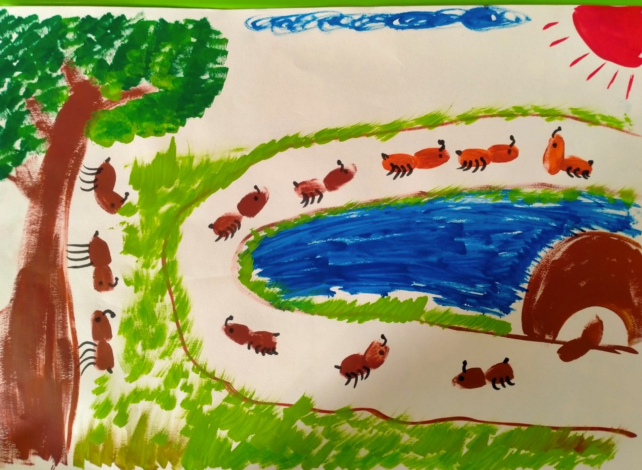 Đàn kiến nhỏ xíu chạy ngang dọc khiến cho các bé ngỡ như các bạn Kiến đang chơi trò đuổi bắt, lại có bạn tưởng tượng bạn Kiến đang chuyển nhà, bạn Kiến đang kiếm thức ăn. Cũng có bạn nói: "Cô ơi, Kiến của con đang đi bơi"... Trong mắt bé, mọi thứ đều trở nên sinh động diệu kỳ.