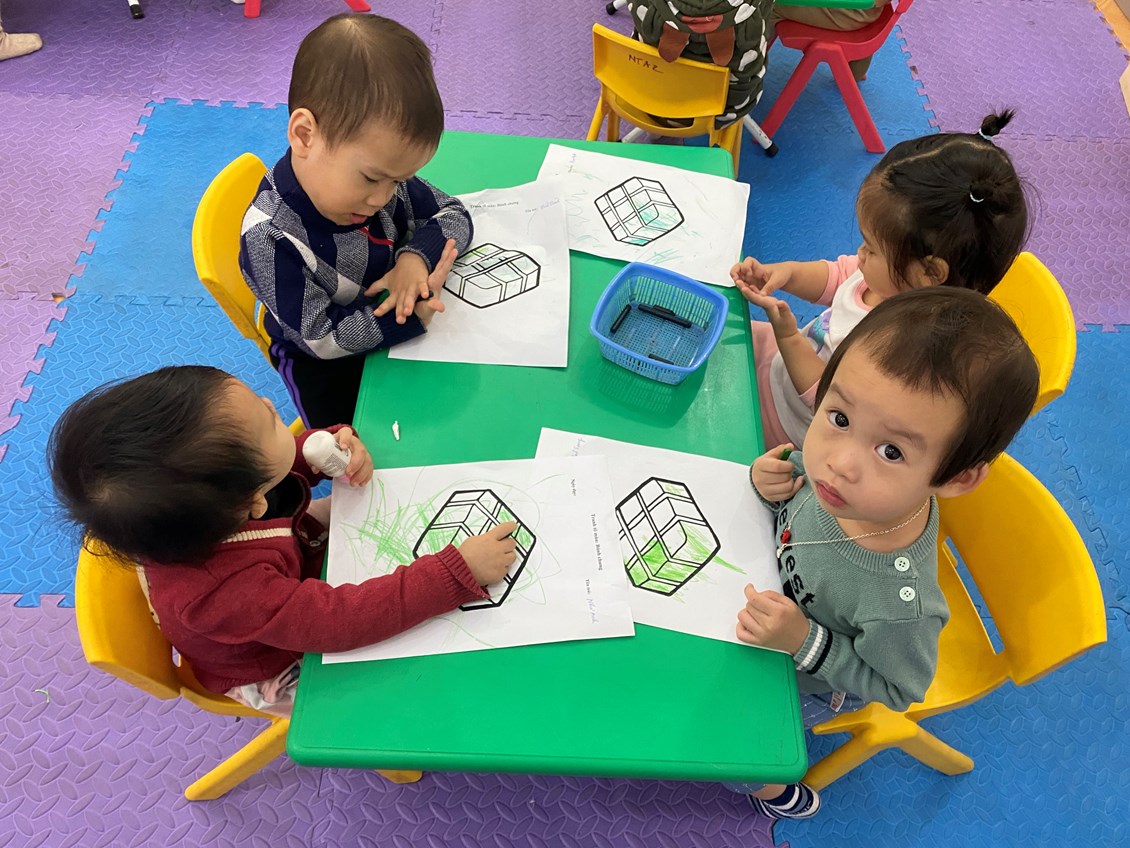 Tiếp tục xuyên suốt với Chủ đề tết và mùa xuân, ngày hôm nay, những búp măng nhỏ lớp NTA1 tạo màu cho chiếc bánh trưng xinh mừng ngày Tết đến Xuân về .