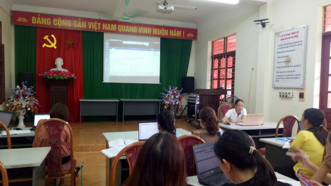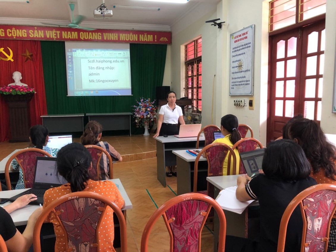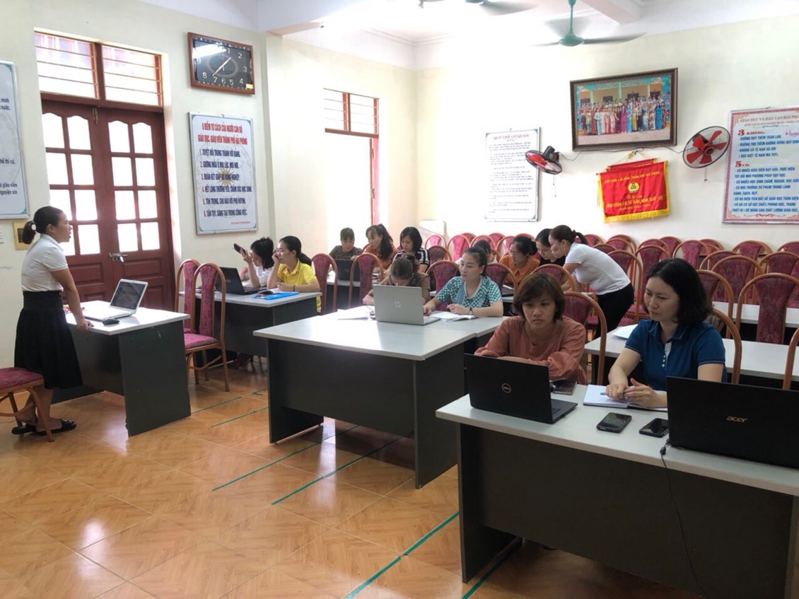 Thực hiện công tác chuyển đổi số trong ngành giáo dục mầm non. Hôm nay trường mầm non Ngọc Xuyên tổ chức tập huấn cho cán bộ, giáo viên, nhân viên nhà trường 3 nội dung: cơ sở dữ liệu ngành , hướng dẫn soạn thảo văn bản theo Nghị định số 30/2020; Hướng dẫn đăng bài trên trang thông tin nhà trường. Dưới đây là một số hình ảnh ghi nhận trong buổi bồi dưỡng chuyên môn.
