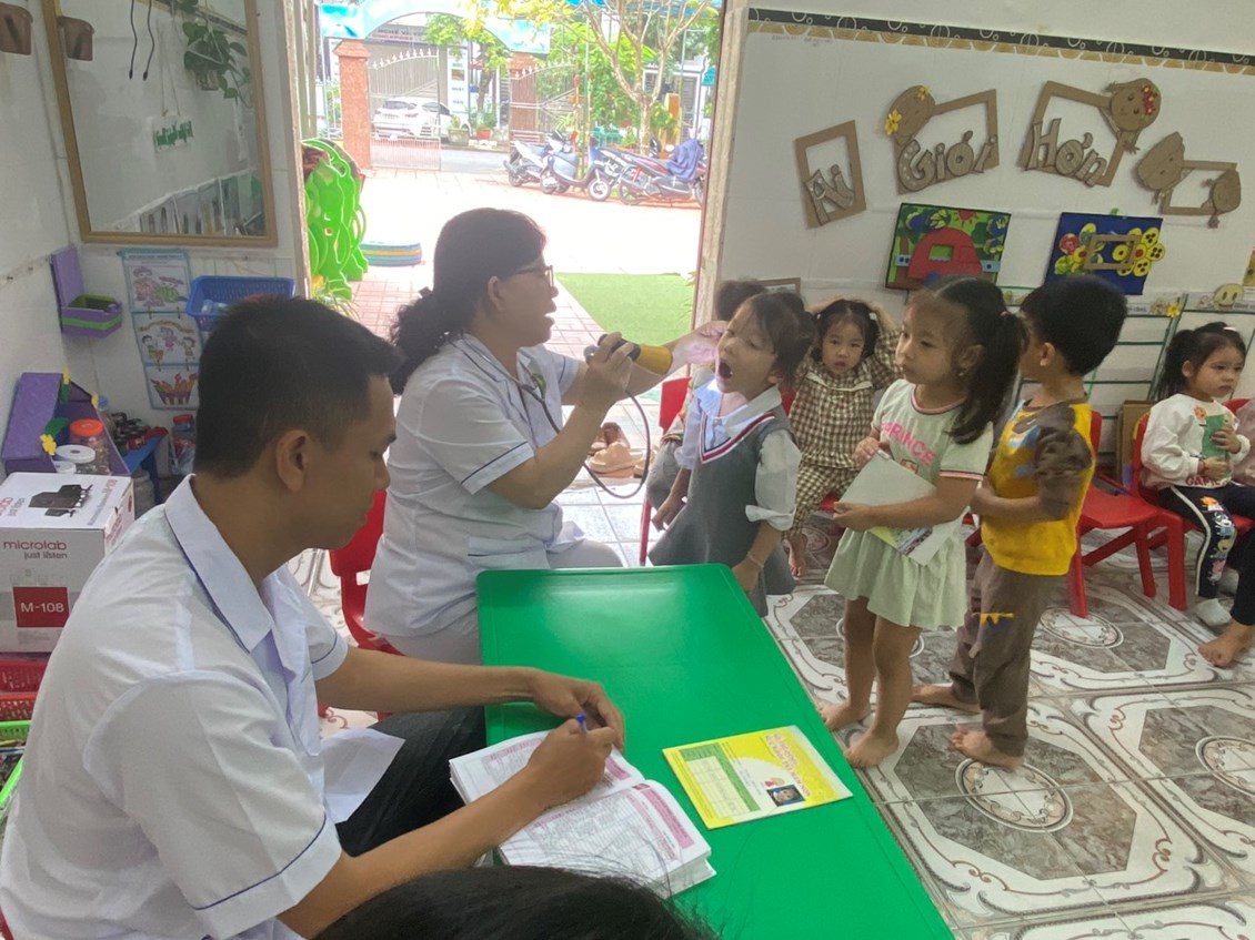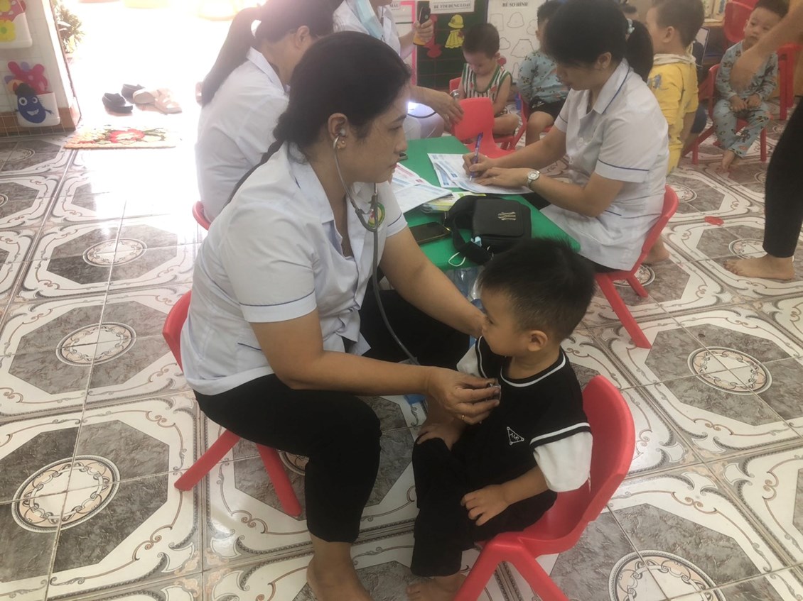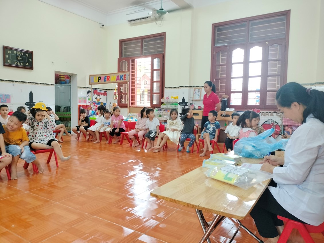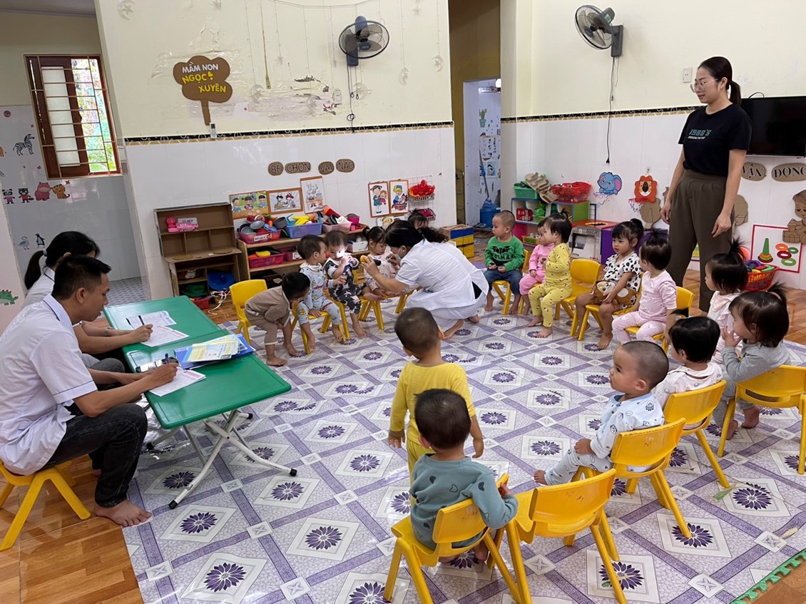 Sau đây là một số hình ảnh khám sức khỏe định kỳ tại trường Mầm non Ngọc Xuyên./.