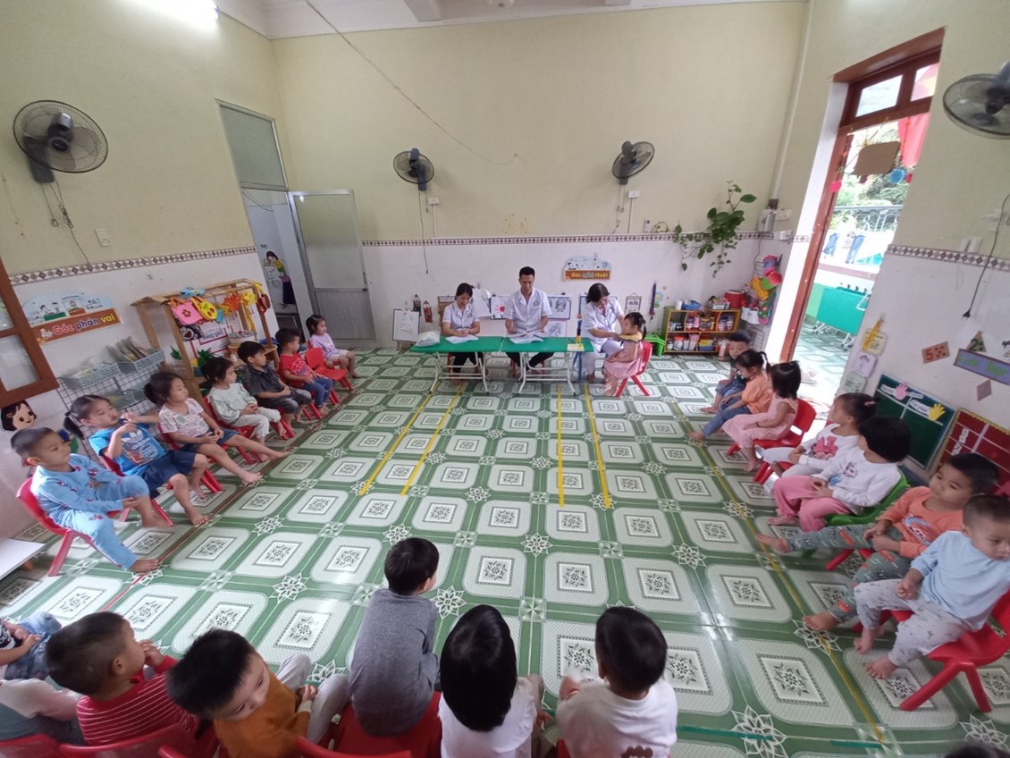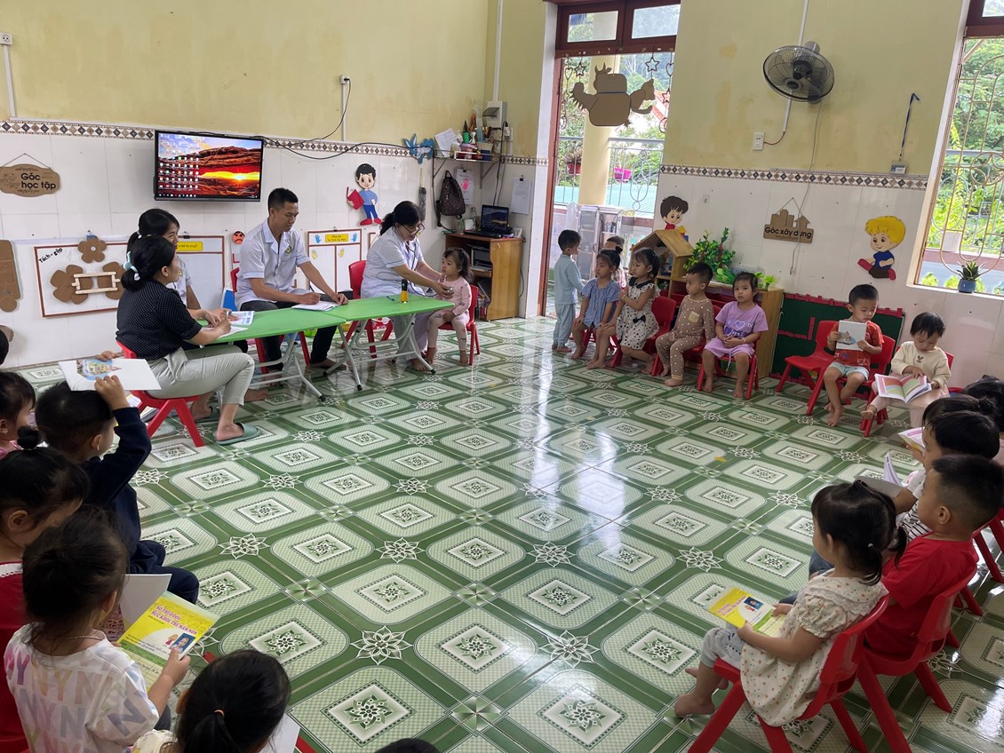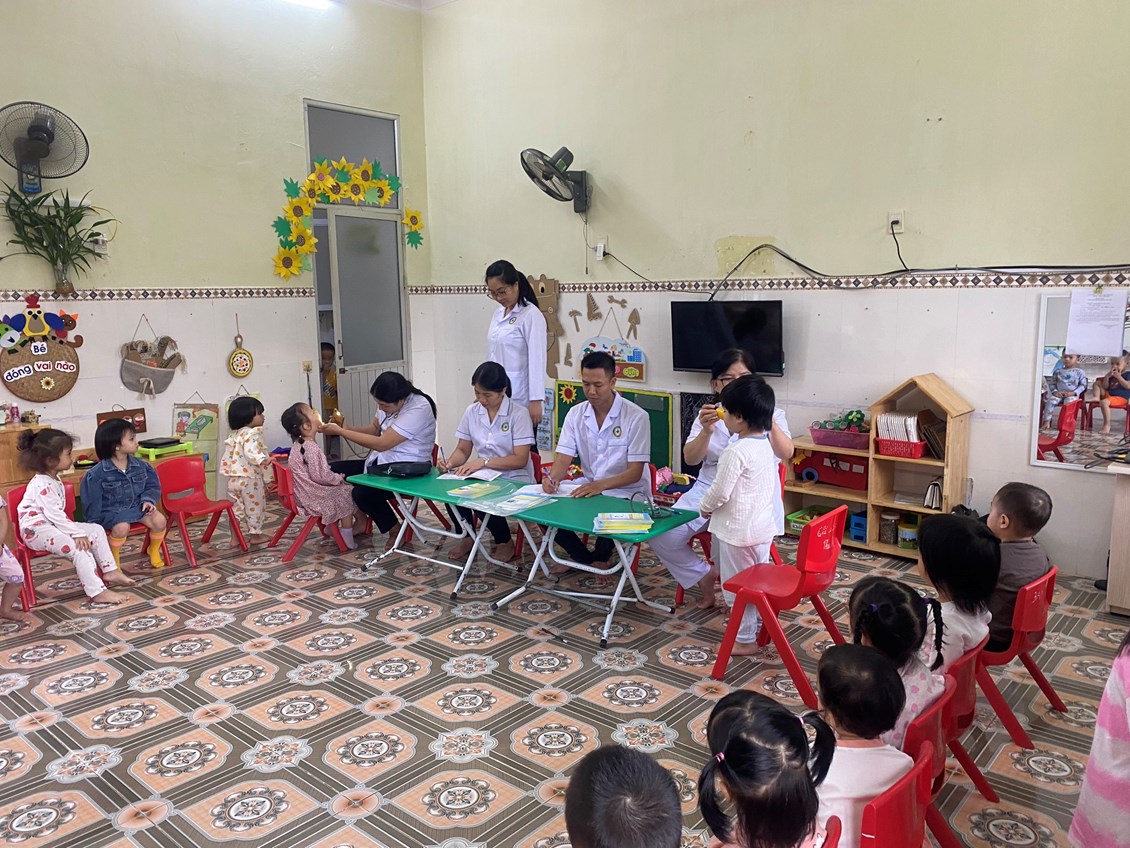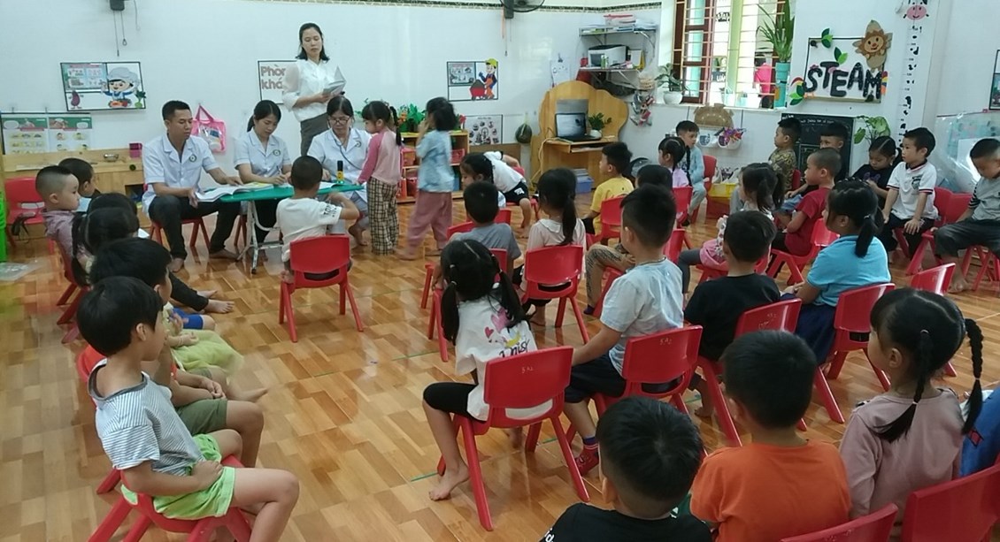 Sau đây là một số hình ảnh khám sức khỏe định kỳ tại trường Mầm non Ngọc Xuyên./.