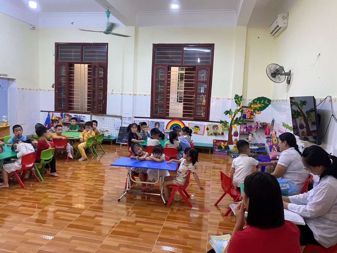 Kết quả kiểm tra sức khoẻ của trẻ đã được cán bộ y tế huyện, trạm y tế xã cùng với giáo viên phụ trách lớp ghi chép cụ thể trong sổ theo dõi sức khỏe, chấm biểu đồ phân loại sức khỏe trẻ và được giáo viên các lớp thông báo đến phụ huynh, đặc biệt là một số trẻ mắc bệnh qua đó phụ huynh cùng phối hợp có biện pháp điều trị kịp thời cho trẻ.
