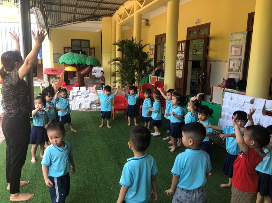 Khởi động tuần mới với bài tập thể dục sáng của các bé.