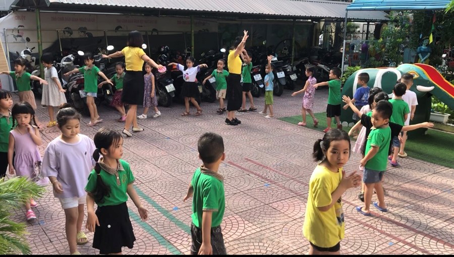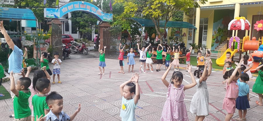 Các cô giáo và các bé trong Trường Mầm non Ngọc Xuyên hàng ngày đã và đang cùng nhau tập thể dục sáng vào một thời gian nhất định sau giờ đón trẻ. Bạn nào ngủ dậy muộn thì từ mai cố gắng đi học đúng giờ để cùng cô và các bạn tập thể dục sáng nhé. Ở trường theo từng tháng trong cả năm học các cô giáo luôn cố gắng duy trì hoạt động này thường xuyên và đều đặn để các bé bắt đầu một ngày học với sự hứng khởi, vui vẻ nhất khởi