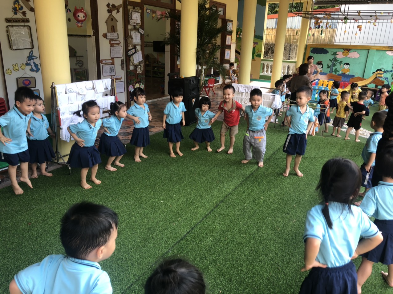 Dưới đây là một số hình ảnh đã được ghi lại trong giờ tập thể dục sáng của các bé