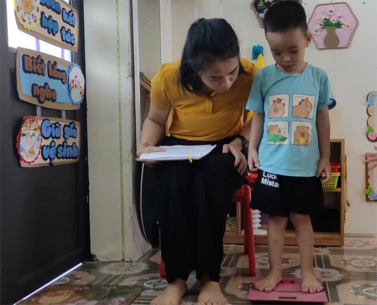 Các bé rất thích được lên cân đo để kiểm tra sức khỏe
