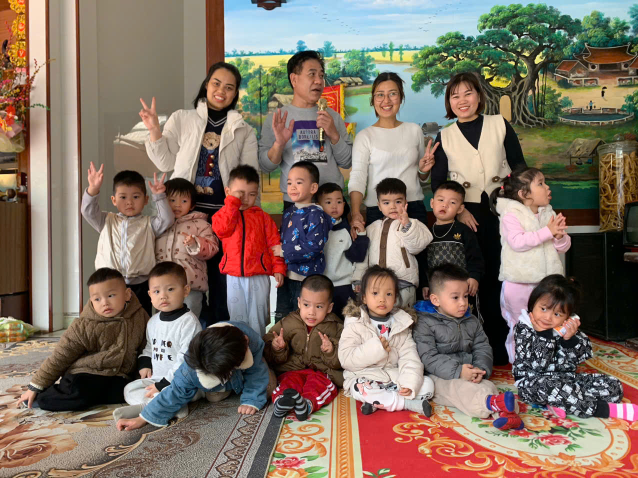 Cô và các bé chụp ảnh làm kỉ niệm tại nhà bạn