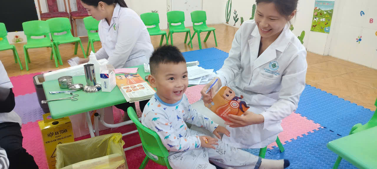 Các bác sĩ đã thăm khám sức khỏe cho bé trước khi tiêm