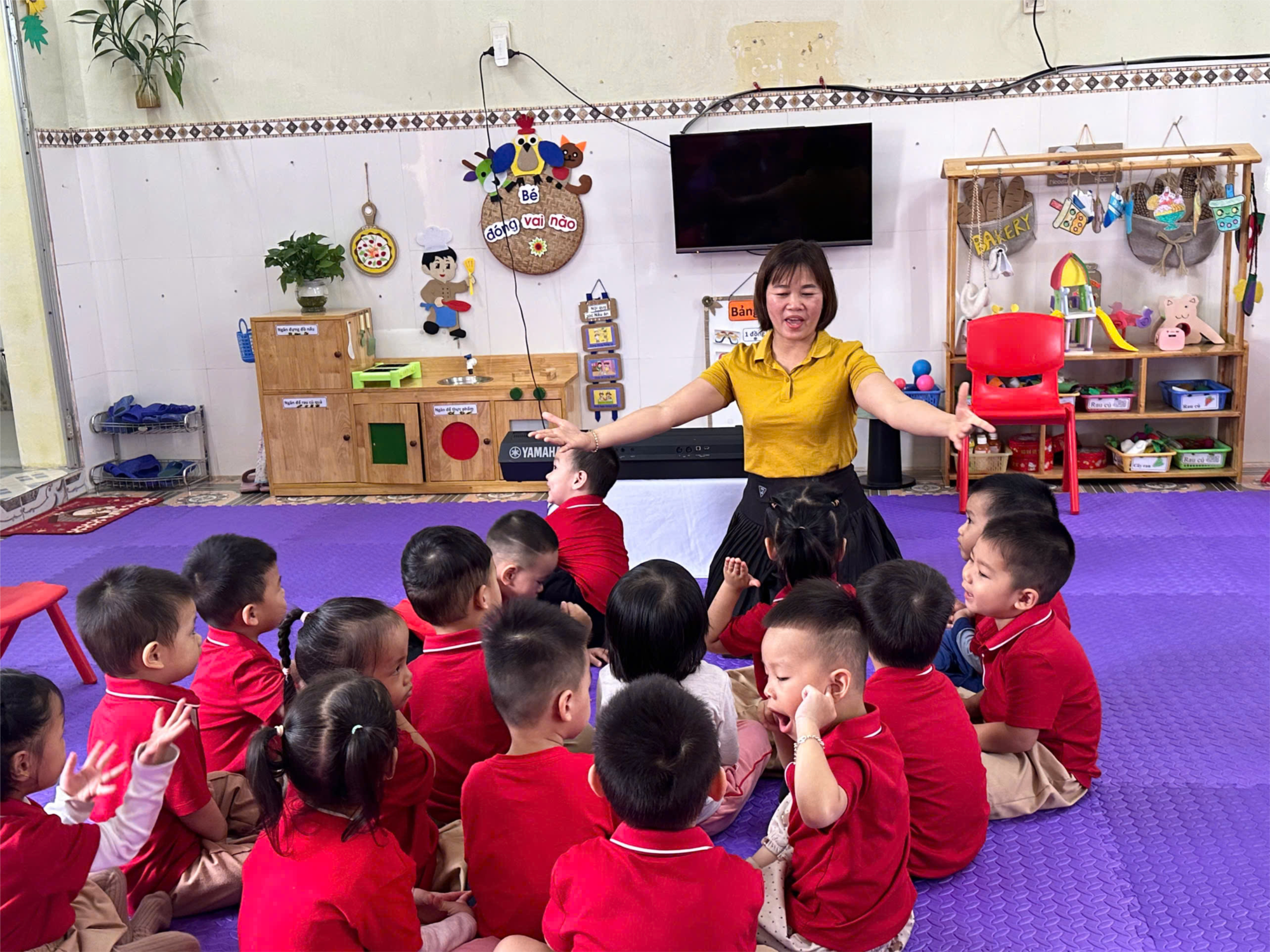 Trong hội thi năm nay, cô mang đến tiết dạy âm nhạc được chuẩn bị công phu, sáng tạo và đầy hứng thú. Các bé lớp 3 tuổi A1 tham gia rất tự nhiên, mạnh dạn, tự tin thể hiện kỹ năng, kiến thức và khả năng năng khiếu của mình. Sau đây là một số hình anhr thể hiện hoạt động.