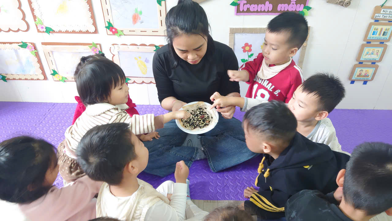 Cô cùng trò chuyện với trẻ về nơi hạt đỗ nảy mầm