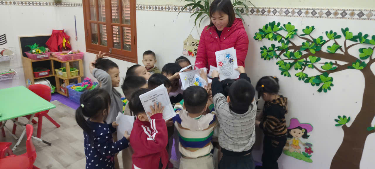 Hoạt động giúp trẻ rèn đôi tay khéo léo, phát triển thẩm mỹ và bộc lộ tình cảm yêu thương với cô giáo. Mỗi tấm thiệp nhỏ sẽ là món quà ý nghĩa mà bé tự tay trang trí gửi tặng cô. Dưới đây là một số hình ảnh thể hiện hoạt động.