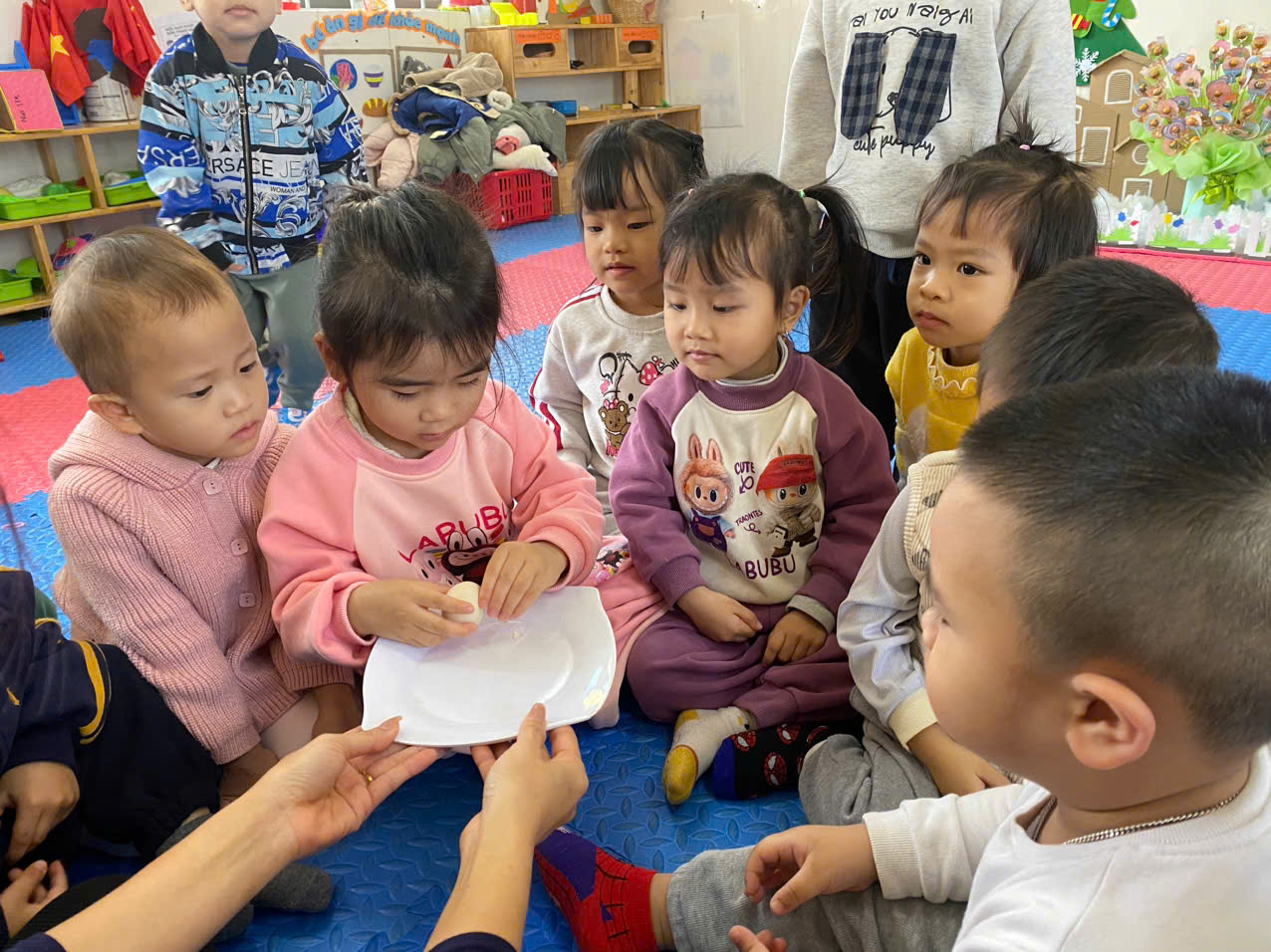 Nhằm giúp trẻ phát triển kỹ năng vận động tinh và hình thành thói quen tự phục vụ, lớp 3 tuổi A2 đã tổ chức hoạt động trải nghiệm “Bóc trứng gà” trong không khí vui tươi, hào hứng.