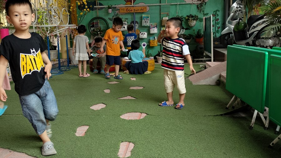 Với quan niệm, hạnh phúc là khi mỗi học sinh, phụ huynh, giáo viên đều cảm nhận được sự ấm áp, yêu thương, an toàn. Lớp học được trang trí sinh động, đẹp mắt, khuôn viên lớp học được trồng thêm hoa cỏ, cây xanh, bể cá cảnh; thư viện nhỏ - nơi dừng chân của phụ huynh và các bé vào những giờ hoạt động ngoài trời,đón và trả trẻ. Được khoác lên áo mới, để không ai cảm thấy chán nản. Theo giáo viên chủ nhiệm lớp 3 Tuổi A3 thì trường lớp xanh, sạch, đẹp sẽ gợi những xúc cảm tích cực, tiếp thêm năng lượng cho các bé, cô giáo và phụ huynh. Mỗi ngày, cô và bé thêm yêu trường lớp, yêu đồng nghiệp, yêu bạn bè: “Khi trường sạch sẽ, an toàn, các bé sẽ muốn đến trường nhiều hơn, mỗi giờ học đều xin bố mẹ ở lại trường thêm một chút. Phụ huynh khi đón con đều muốn vào không gian của trường để thư giãn, người dân xung quanh cũng có thể vào trường để đưa trẻ đến vui chơi, học sinh ra trường rồi, học tại trường cấp 1;vẫn muốn ghé về thăm không gian trường,thăm cô giáo cũ…, đó chính là giá trị mà chúng tôi đã đạt được khi xây dựng lớp học hạnh phúc.
