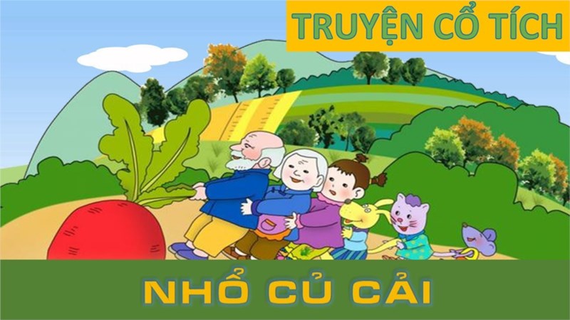- Bà nó ơi! Mau tới đây giúp tôi nhổ củ cải lên! Bà già chạy ra túm áo ông già, ông già nắm cây cải. Cả hai cùng cố hết sức nhổ củ cải: