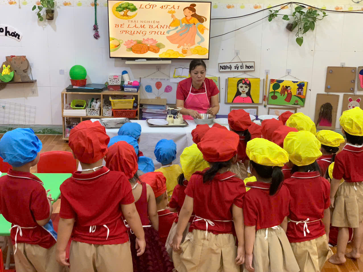 Đối với các bạn nhỏ, bánh Trung thu giờ đây đã không còn xa lạ vì được thấy bày bán ở các cửa hàng rất nhiều, rất dễ mua. Tuy nhiên, bánh Trung Thu, trong đó có bánh nướng được làm như thế nào, nguyên liệu để làm bánh gồm những gì thì nhiều bé còn chưa biết. Để giúp các con hiểu được cách làm bánh và có những trải nghiệm thú vị, cô và trò lớp 4TA1 - Trường mầm non Ngọc Xuyên đã cùng nhau trải nghiệm tự làm bánh nướng. Cô giáo giới thiệu về các nguyên vật liệu làm bánh dẻo, các công đoạn pha bột, nhào bột, trộn nhân và cho bánh vào khuôn,… bạn nào cũng đều rất chú ý lắng nghe, quan sát và làm theo các kỹ năng mà cô hướng dẫn để làm được những chiếc bánh nướng sao cho thật đẹp từ đôi bàn tay nhỏ xinh xoay xoay, ấn ấn,… của các bé. Những nụ cười háo hức thể hiện rõ trên gương mặt của các bé đã rất thích thú khi cho bánh vào khuôn và làm ra những chiếc bánh nướng thật ngon và hấp dẫn cho riêng mình. Bố, mẹ hãy cùng ngắm nhìn những khoảnh khắc đáng yêu của các con trong hoạt động trải nghiệm: Bé làm bánh Trung Thu ngày hôm nay nhé!