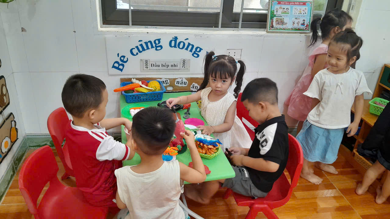 Hoạt động góc còn là xuất phát điểm để trẻ hình thành và phát triển khả năng và tư duy làm việc nhóm, mở rộng các mối quan hệ, giúp trẻ ngày càng tự tin hơn trong giao tiếp.