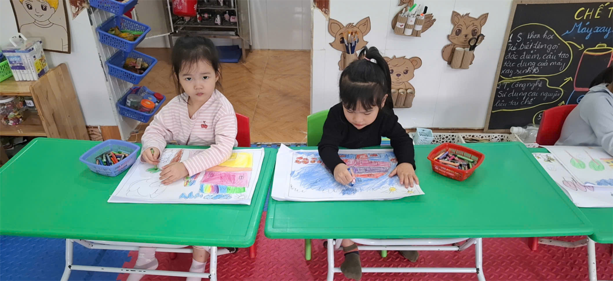 Hàng ngày vào các giờ hoạt động góc các bé tích cực rèn luyện bản thân, thể hiện sáng tạo qua các bài vẽ.