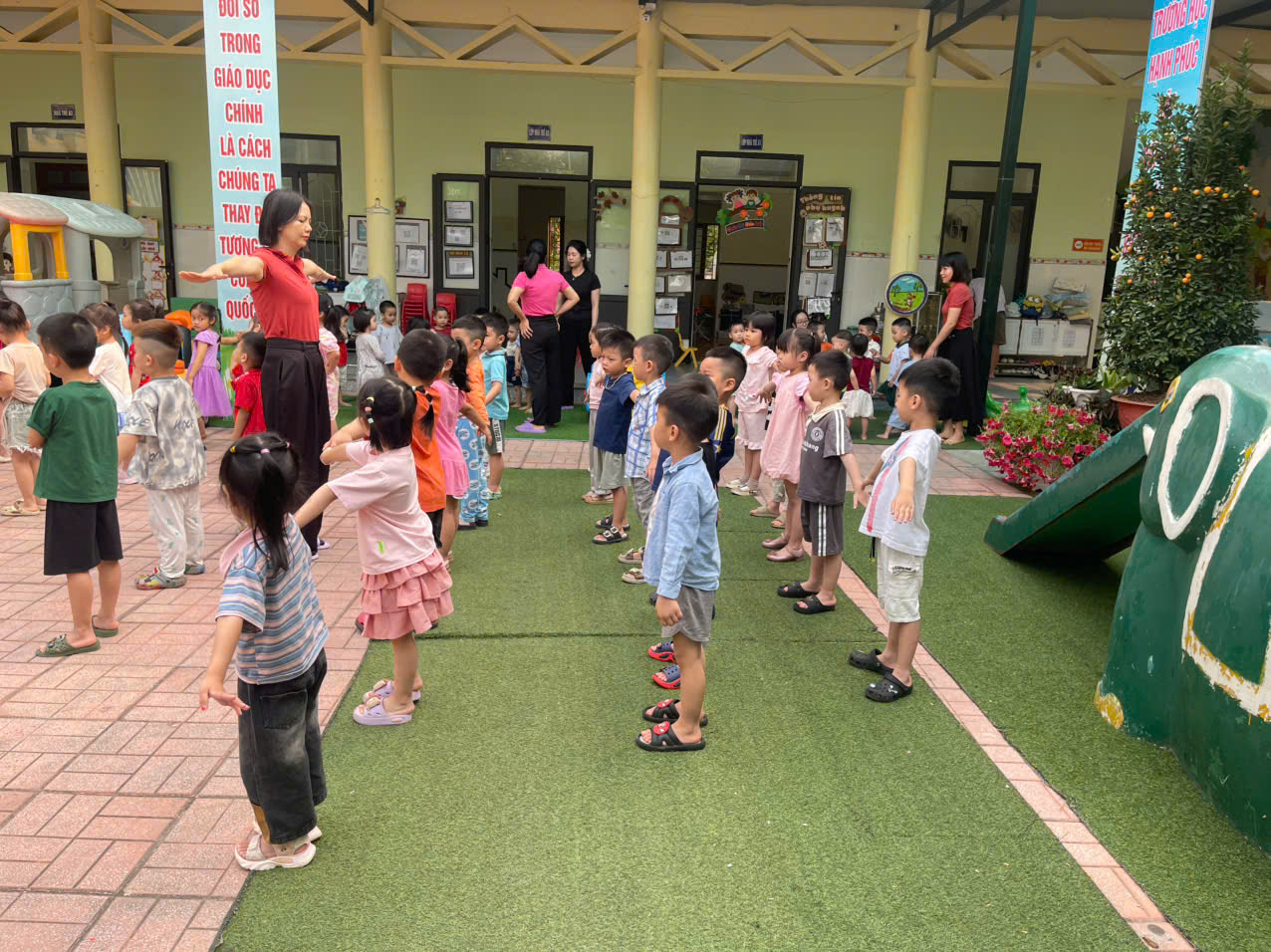 Những bài tập đơn giản, nhịp nhàng theo nền nhạc 🎶 còn giúp trẻ hình thành thói quen nề nếp, biết xếp hàng ngay ngắn 🚶♂️🚶♀️, tuân thủ hiệu lệnh và phối hợp nhịp nhàng cùng bạn bè 🤝. Chính vì vậy, sau mỗi buổi thể dục sáng, các bé lớp 4 tuổi A2 đều bước vào lớp với tâm trạng hào hứng 😄, sẵn sàng khám phá 🔍 và tiếp thu những điều mới mẻ trong ngày học ✨.