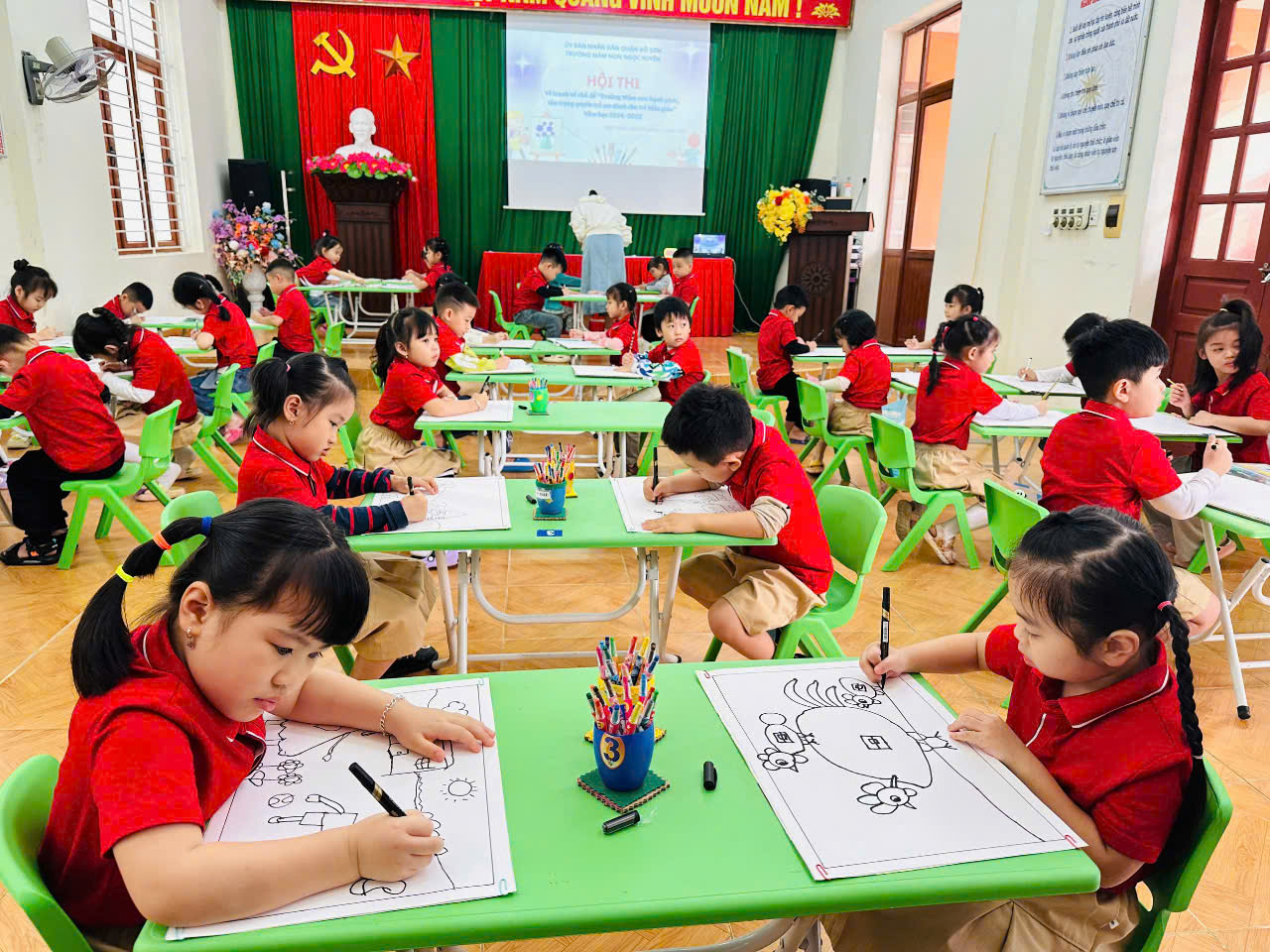Các bé rất hào hứng tự tin và cẩn thận khéo léo tạo ra bức tranh của mình.