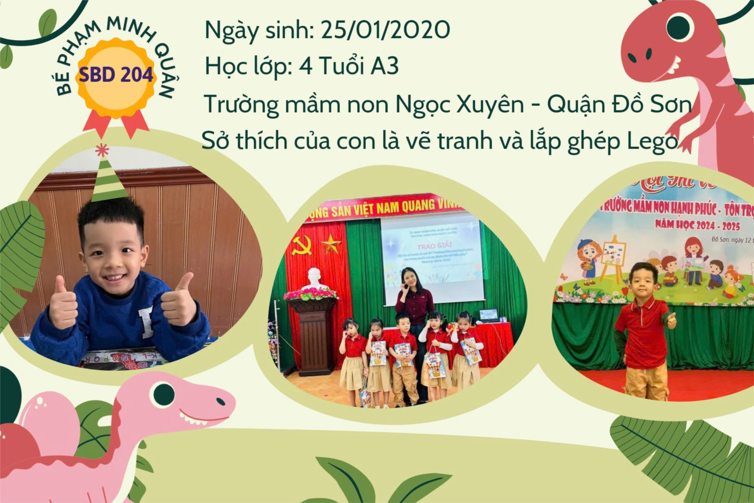 Chúc mừng Bé Minh Quân đã xuất sắc đạt giải Ba trong hội thi vẽ tranh cấp thành phố chủ đề "Trường học hạnh phúc, tôn trọng quyền trẻ em"!