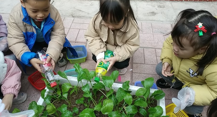 Hoạt động: Bé chăm sóc cây xanh của các bé khối 4 Tuổi.