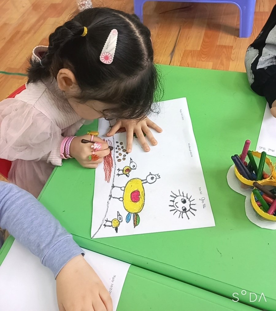 con đi lon ton”. Những chú gà thật ngộ nghĩnh và đáng yêu qua hoạt động học “ Vẽ