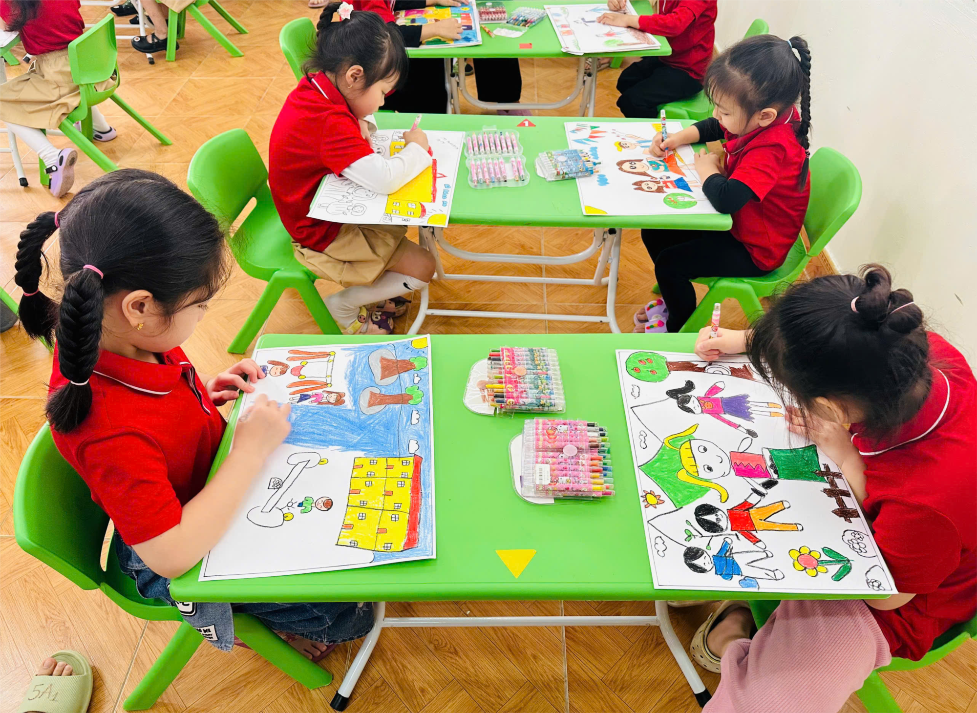 Từ những nét vẽ ngây thơ nhưng đầy sáng tạo, các em đã truyền tải nhiều thông điệp ý nghĩa về sự yêu thương, đoàn kết và niềm vui khi được học tập tại Trường Mầm non Ngọc Xuyên. Mỗi bức tranh đều có nét độc đáo riêng và tạo nên một bức tranh tổng thể rực rỡ sắc màu về trường học hạnh phúc, nơi các em luôn cảm thấy an toàn và được yêu thương.