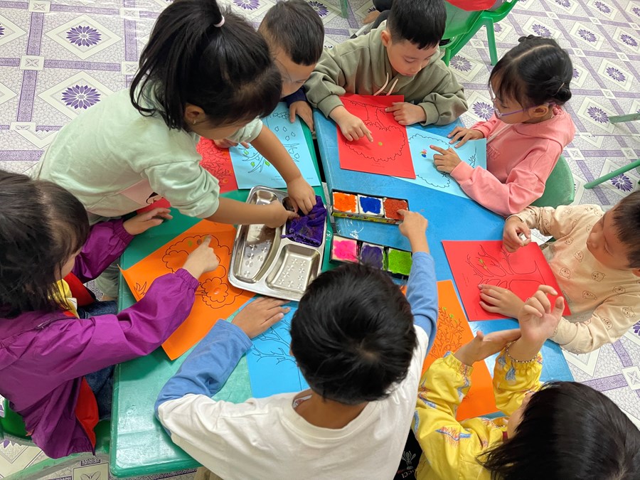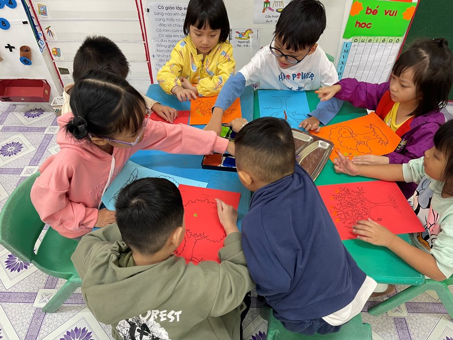 Đôi bàn tay của các bé lớp 5 tuổi A1 còn biết làm lên những món quà dễ thương tặng bà, tặng mẹ nhân ngày 20/10.