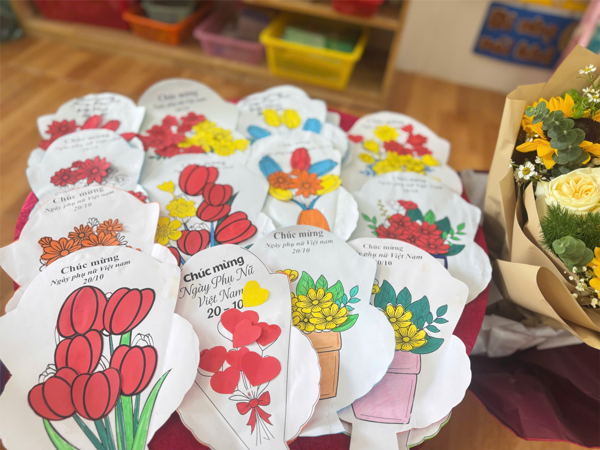 Với đôi bàn tay nhỏ xinh, các con đã tỉ mỉ dán hoa, vẽ hình, trang trí từng tấm thiệp bằng tất cả tình yêu thương dành cho mẹ và bà. ❤️
