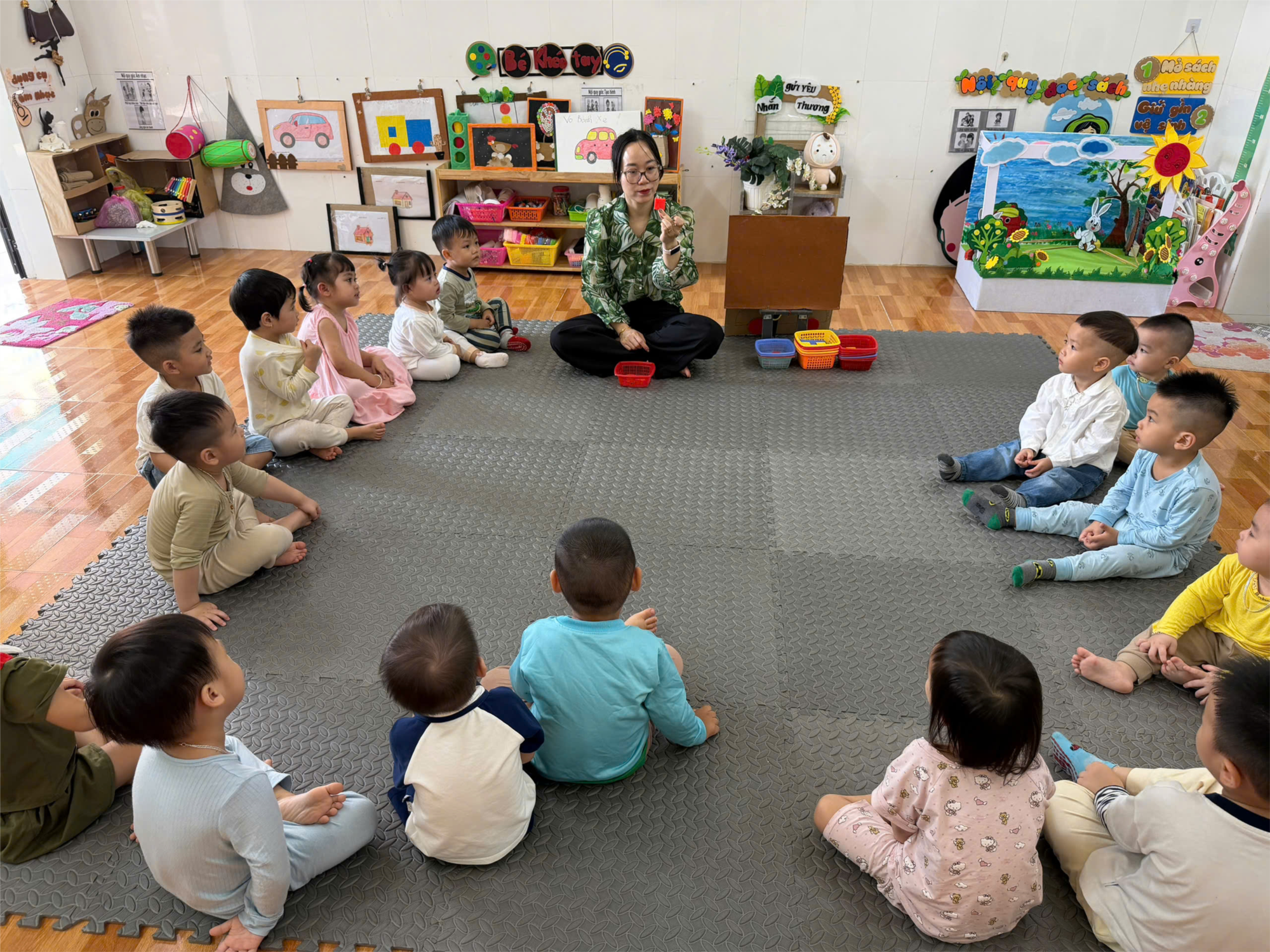 Hôm nay, các con lớp Nhà trẻ A1 đã có một tiết học thật vui và bổ ích với bài nhận biết hình vuông và hình tròn