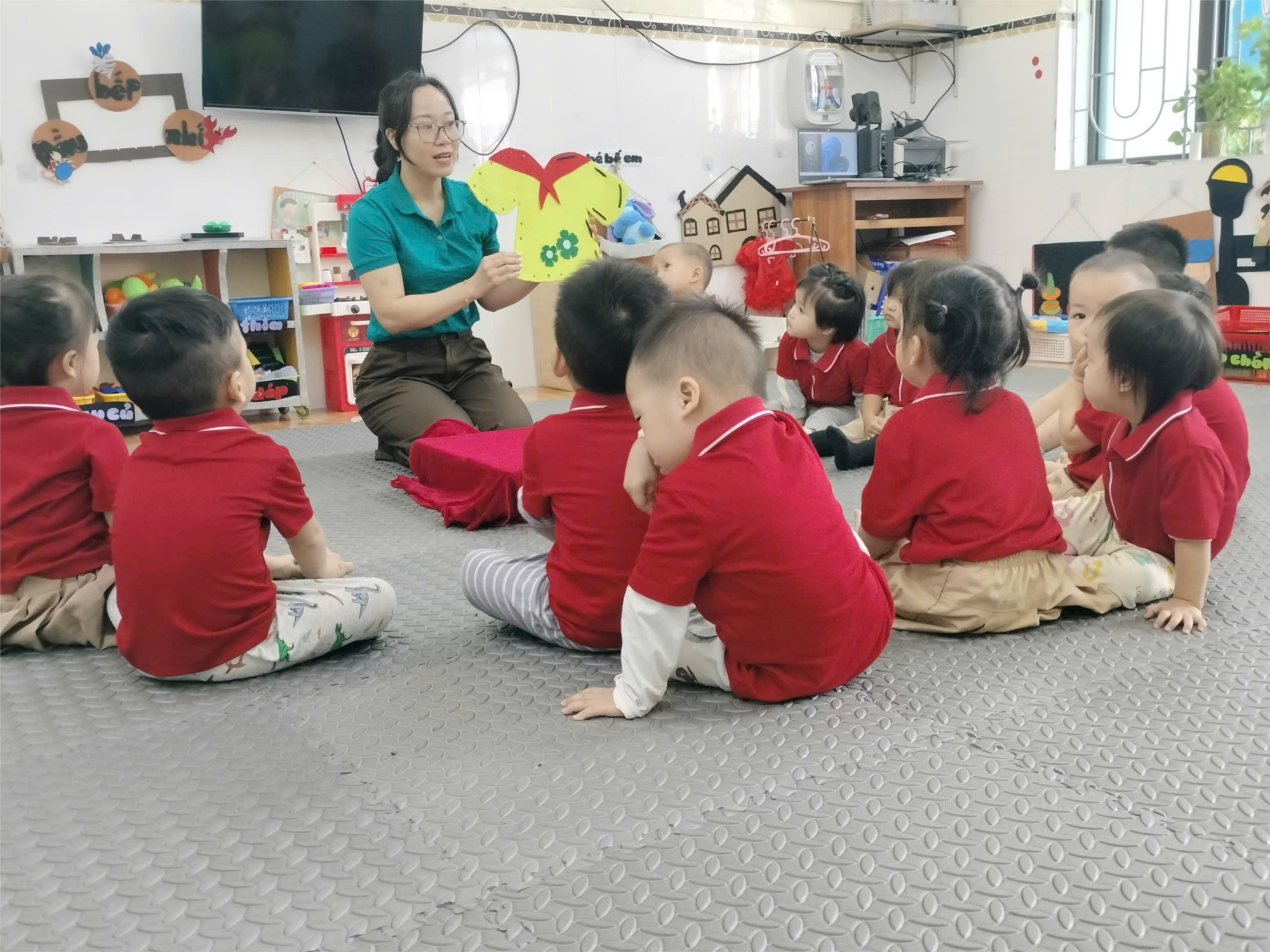 Nhân dịp chào mừng Ngày Nhà giáo Việt Nam 20/11, các bạn nhỏ lớp Nhà trẻ A1 đã cùng nhau thực hành một hoạt động thật ý nghĩa – “Luồn dây áo tặng cô”