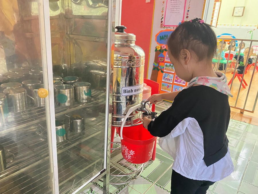 Trong giờ ăn, các bé được tập cách sắp xếp bàn ăn, bê bát ăn cơm một cách cẩn thận, sau khi ăn xong các bé biết tự mang bát đến khu vực quy định rồi lại cùng nhau lau bàn, trải chiếu… để chuẩn bị cho giờ ngủ trưa. Tất cả các kỹ năng đều được các con thực hiện một cách hào hứng và tự tin. Những lúc như vậy các cô giáo luôn chú ý khen ngợi, động viên, khuyến khích các con, điều đó giúp các bé luôn vui thích và cố gắng phát huy những kỹ năng tốt của mình. Những trải nghiệm này sẽ giúp các con thích ứng nhanh với môi trường xung quanh, phát triển tính nhanh nhẹn, tự giác, tự lập, tinh thần tập thể, biết quan tâm giúp đỡ những người xung quanh, không lười biếng và ỷ lại vào người khác và nếu được thực hiện thường xuyên thì đây sẽ là những thói quen tốt theo các con đến suốt cuộc đời.
