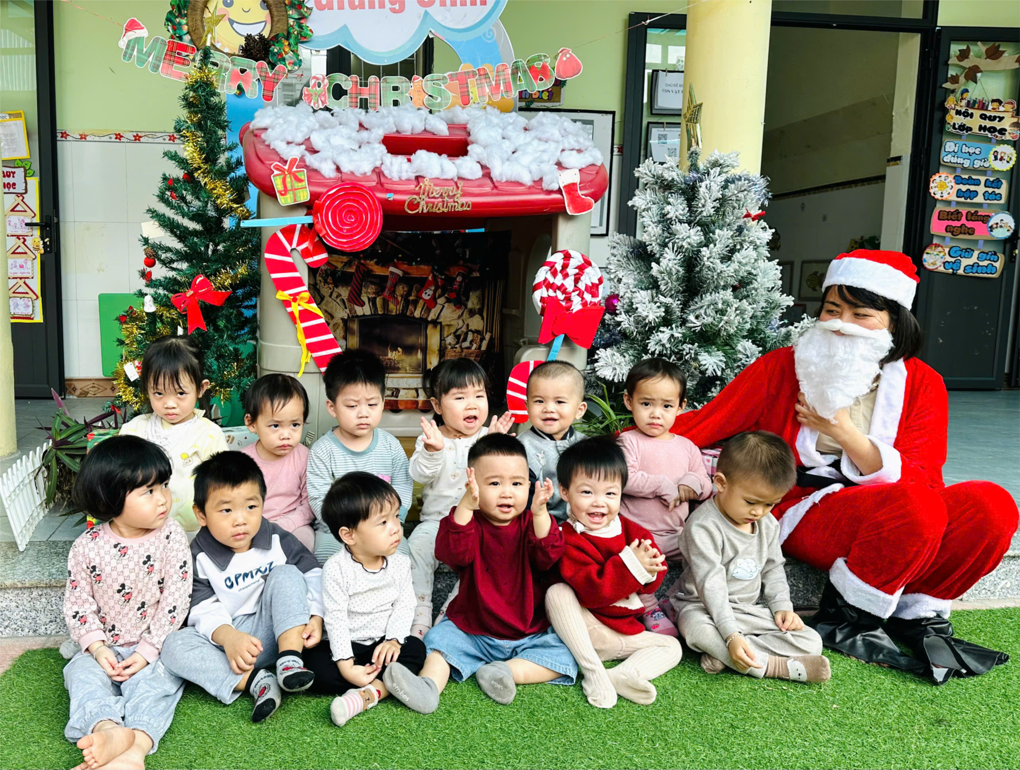 Các bé háo hức cùng cô hát những bài hát Noel vui tươi, vận động theo nhạc và tham gia các hoạt động nhẹ nhàng phù hợp với lứa tuổi, trong những bộ trang phục Noel đỏ thắm và chiếc mũ ông già Noel đáng yêu, gương mặt bé nào cũng rạng rỡ nụ cười hồn nhiên, giây phút được gặp ông già Noel và nhận những món quà nhỏ xinh khiến ánh mắt các con long lanh niềm vui.