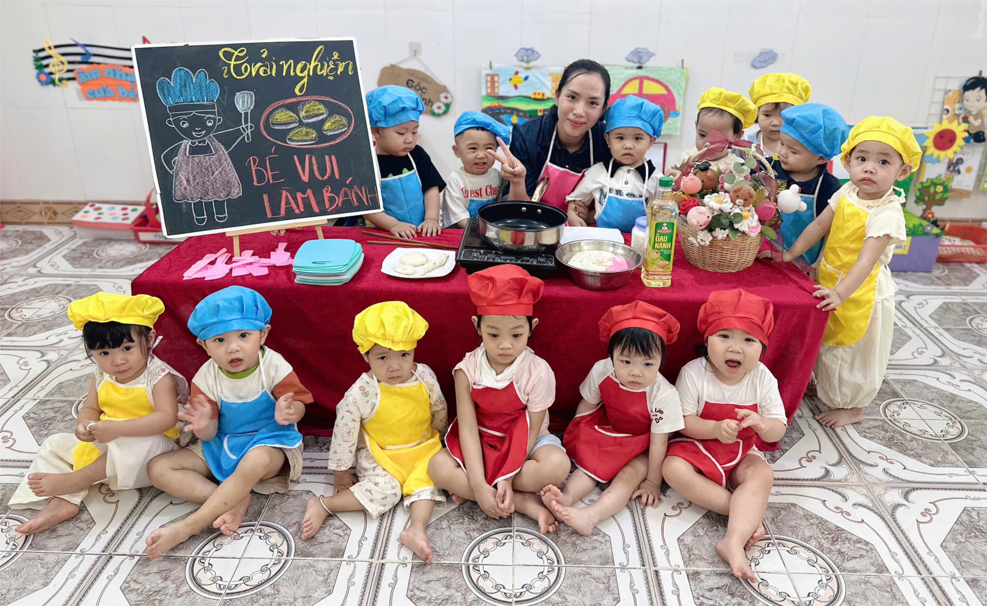 Chúng mình rất hào hứng cùng nhau lưu lại khoảng khắc trước khi được làm bánh.