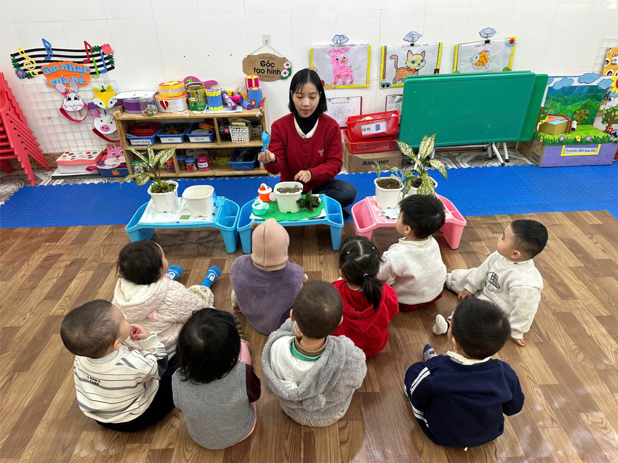 Hoạt động bé chăm sóc cây xanh của các bạn nhỏ lớp Nhà trẻ A3- Trường mầm non Ngọc Xuyên