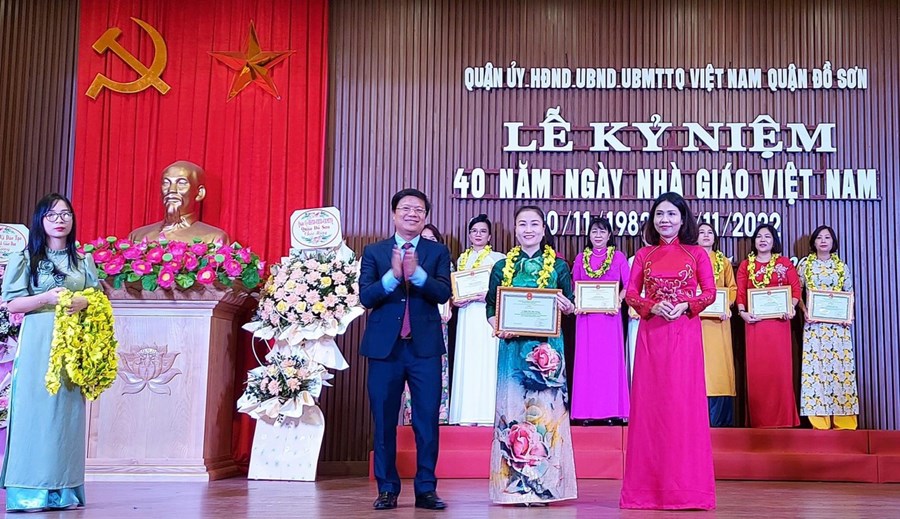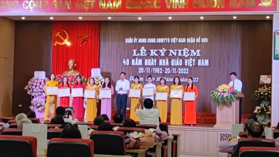 Sáng ngày 16/11/2022,Quận Uỷ- HĐND- UBND- Uỷ Ban MTTQ Việt Nam Quận Đồ Sơn tổ chức “Lễ kỷ niệm 40 năm ngày Nhà giáo Việt Nam (20/11/1982-20/11/2022)”